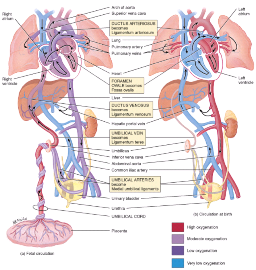 The cardiovascular system in-utero is a complicated machine that is designed to bypass the lungs and provide oxygenated blood from the placenta. There are two main structures that help maintain oxygenation when the fetus’ lungs are not used: