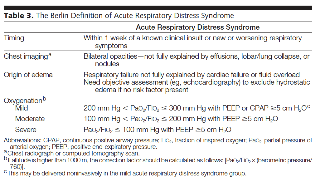- Hypoxemia – PaO2/FiO2 ≤ 300 mmHg with PEEP/CPAP ≥ 5 cmH2O