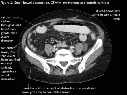 - Mullan CP, Siewert B, Eisenberg RL. Small bowel obstruction. American Journal of Roentgenology. 2012; 198(2):W105-17. [pubmed]