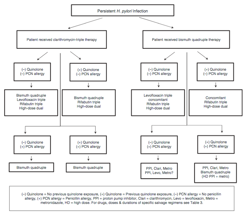 - Chey WD, Leontiadis GI, Howden CW, Moss SF. ACG Clinical Guideline: Treatment of Helicobacter pylori Infection. The American journal of gastroenterology. 2017; 112(2):212-239. [pubmed]