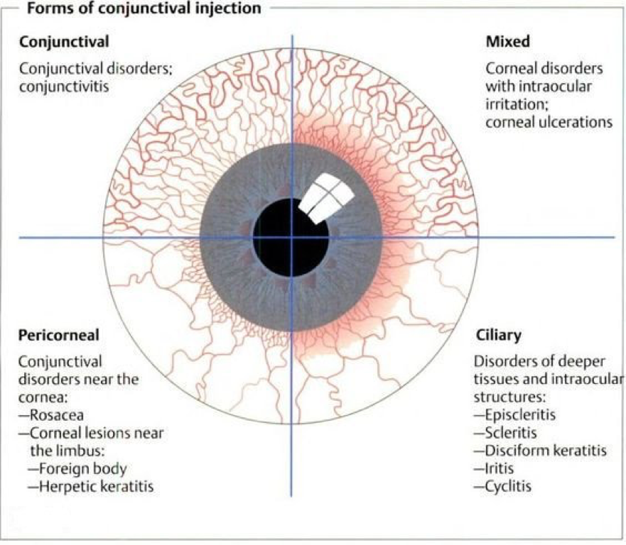 The important thing to remember is that the conjunctiva is transparent, unless inflamed (which is termed “injected”).