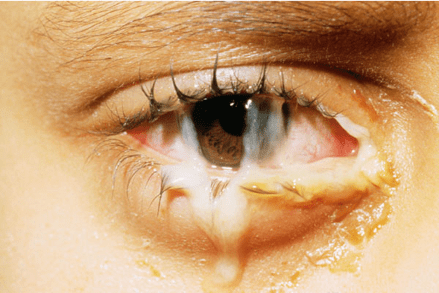 - Starts unilateral and spreads to contralateral eye within 48 hours of symptoms onset