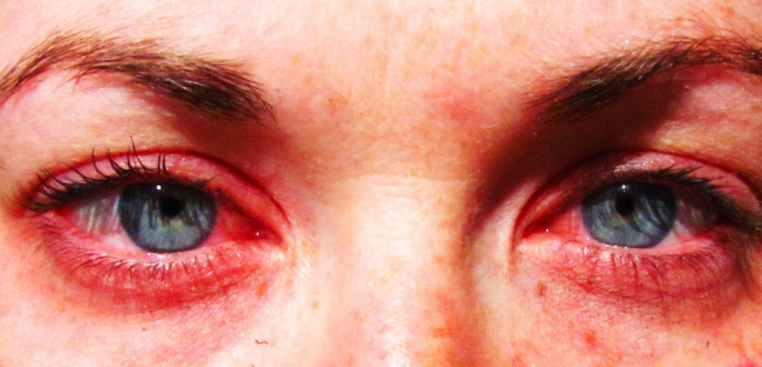 - Matted/thick in the morning with scant, watery drainage throughout the day