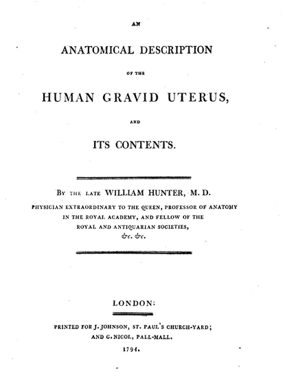 - Hunter W. An Anatomic Description of the Human Gravid Uterus. 1794. London