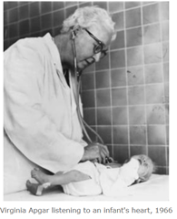 History – Named after Virginia Apgar (1909-1974), who was a doctor at New York-Presbyterian and the first woman to become a full professor at Columbia University College of Physicians and Surgeons. She spent most of her career studying obstetrical anesthesia and its effect on the newborn. As a young doctor, Apgar was appalled by the treatment of premature, apneic babies. The practice at the time was to list apneic or malformed newborns as stillborn and place them out of sight to die. Outraged by this practice, Dr. Apgar developed a method that would ensure the observation and documentation of the true condition of each newborn during the first minute of life. The Apgar score was first published in 1953 in a paper titled “A Proposal for a New Method of Evaluation of the Newborn Infant” in which she highlighted the need for a “grading system of newborn infants [that can be used] as a basis for discussion and comparison of obstetric practices, types of maternal pain relief, and the effects resuscitation”. Later, her research went on to show that lower Apgar scores are associated with higher neonatal morbidity and mortality.