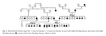History – Named after Erik Adolf von Willebrand (1870-1949), a Finnish physician who received his medical doctorate from the University of Helsinki 1896, and who took a special interest in hematology and coagulation. In 1924, a 5yo girl was brought to him due to a bleeding disorder and he successfully performed a family history map on the girl’s 66 living family members and discovered the autosomal dominant pattern. He published his findings in 1926 in Swedish calling it “pseudo-hemophilia”, but it wasn’t until 1931 (when it was translated into German) did it gain any traction in the medical community.