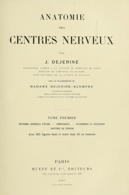 - Déjerine, JJ, Déjerine-Klumpke, A. Anatomie des Centres Nerveux. 1895. [link]