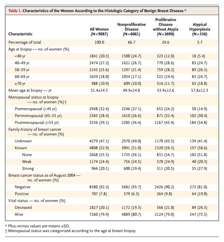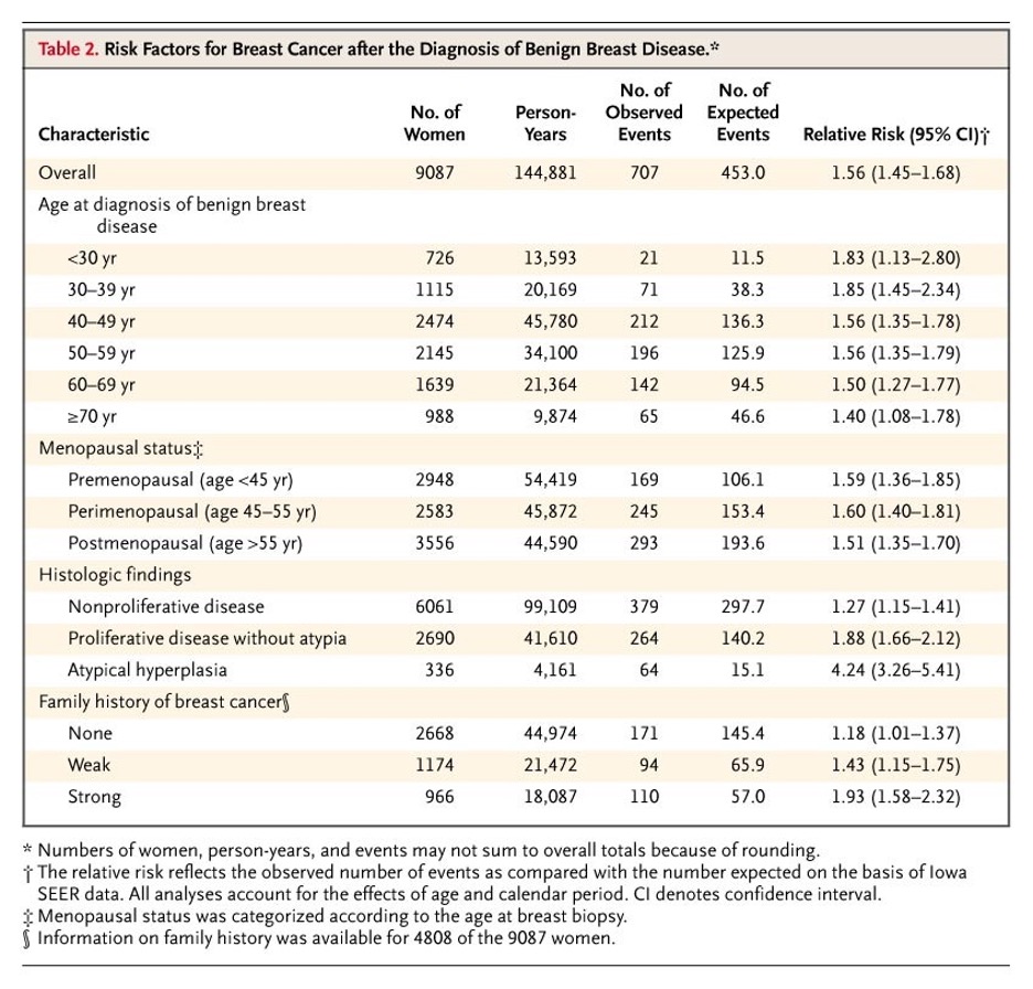 - Hartmann LC, Sellers TA, Frost MH, et al. Benign breast disease and the risk of breast cancer. N Engl J Med. 2005; 353(3):229-37. [pubmed]