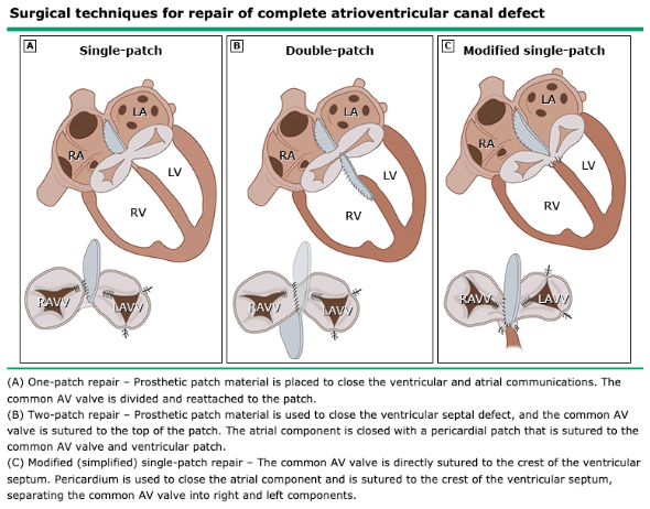 - Backer CL, Stewart RD, Mavroudis C. What is the best technique for repair of complete atrioventricular canal? Seminars in thoracic and cardiovascular surgery. 2007; 19(3):249-57. [pubmed]