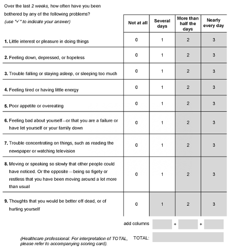 - Can be used as a brief screening tool using the first two questions from the PHQ-9