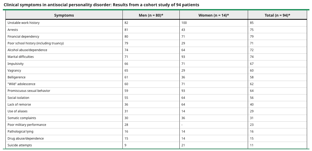 - This patient is exhibiting the signs and symptoms of Antisocial Personality Disorder